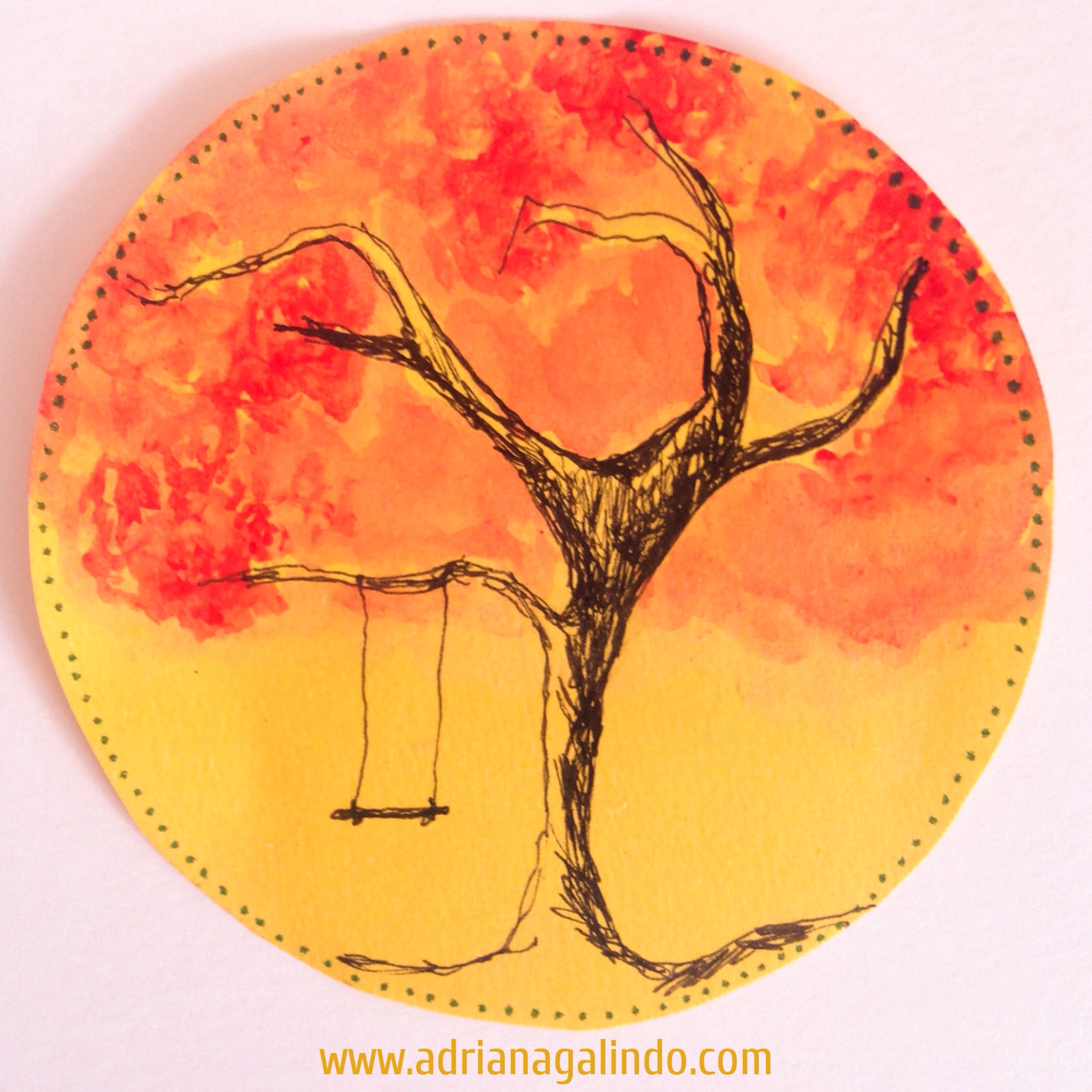 Aquarela e Nankin sobre papel color plus, 6,5 diâmetro