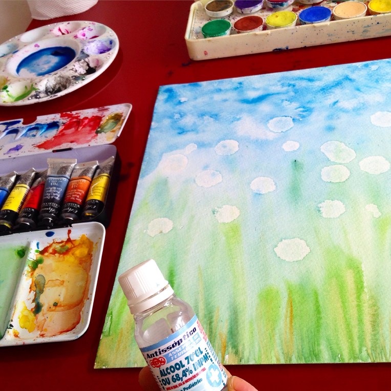 21 de março de 2015 | drigalindo Trying alcohol watercolor textures 🎨 Testando efeitos na aquarela utilizando álcool 70