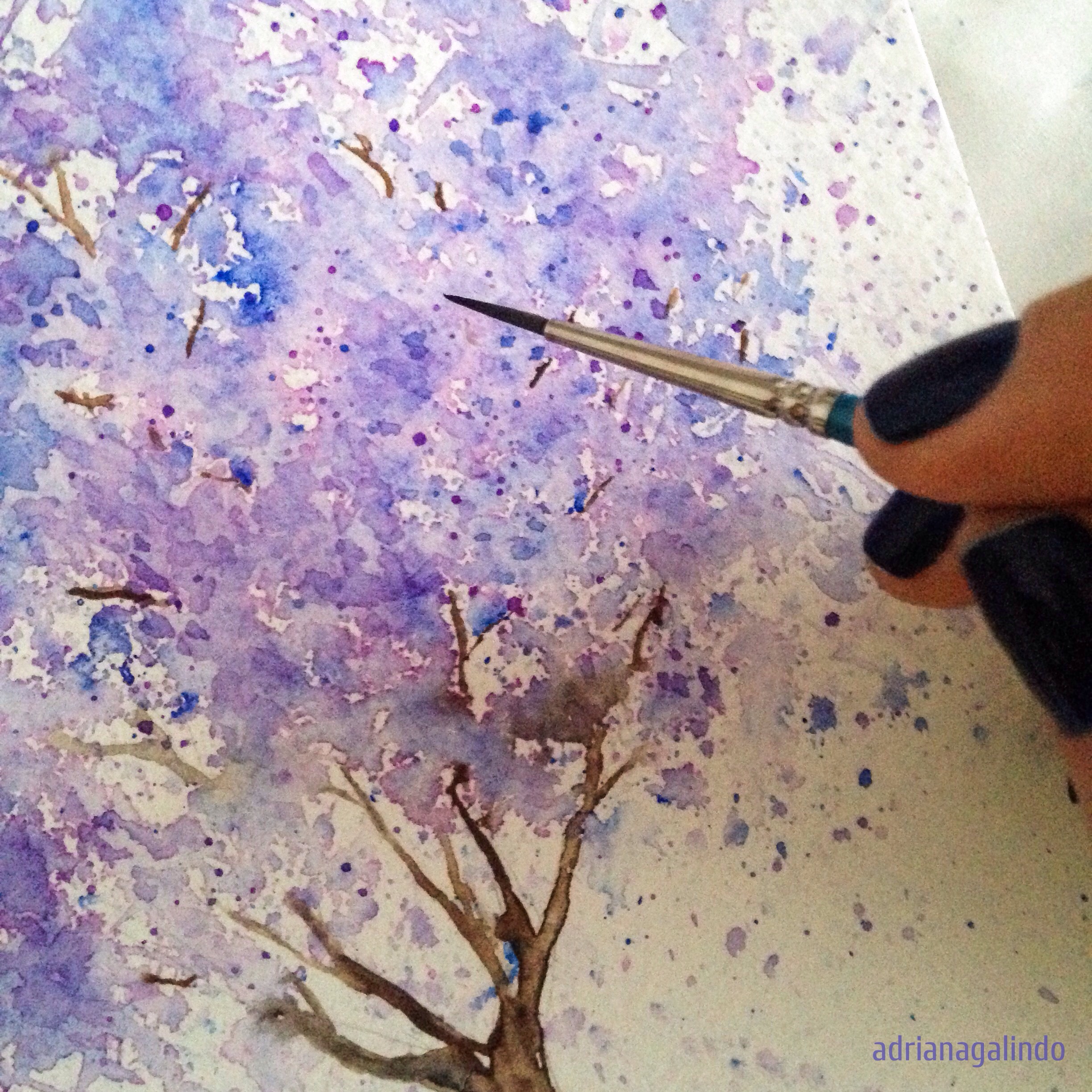 #40treesproject Imagem | 30 de setembro de 2015 | drigalindo Nascendo a 13 árvore 💜🌸 The 13 tree has been born 🌳💜 aquarela / watercolor