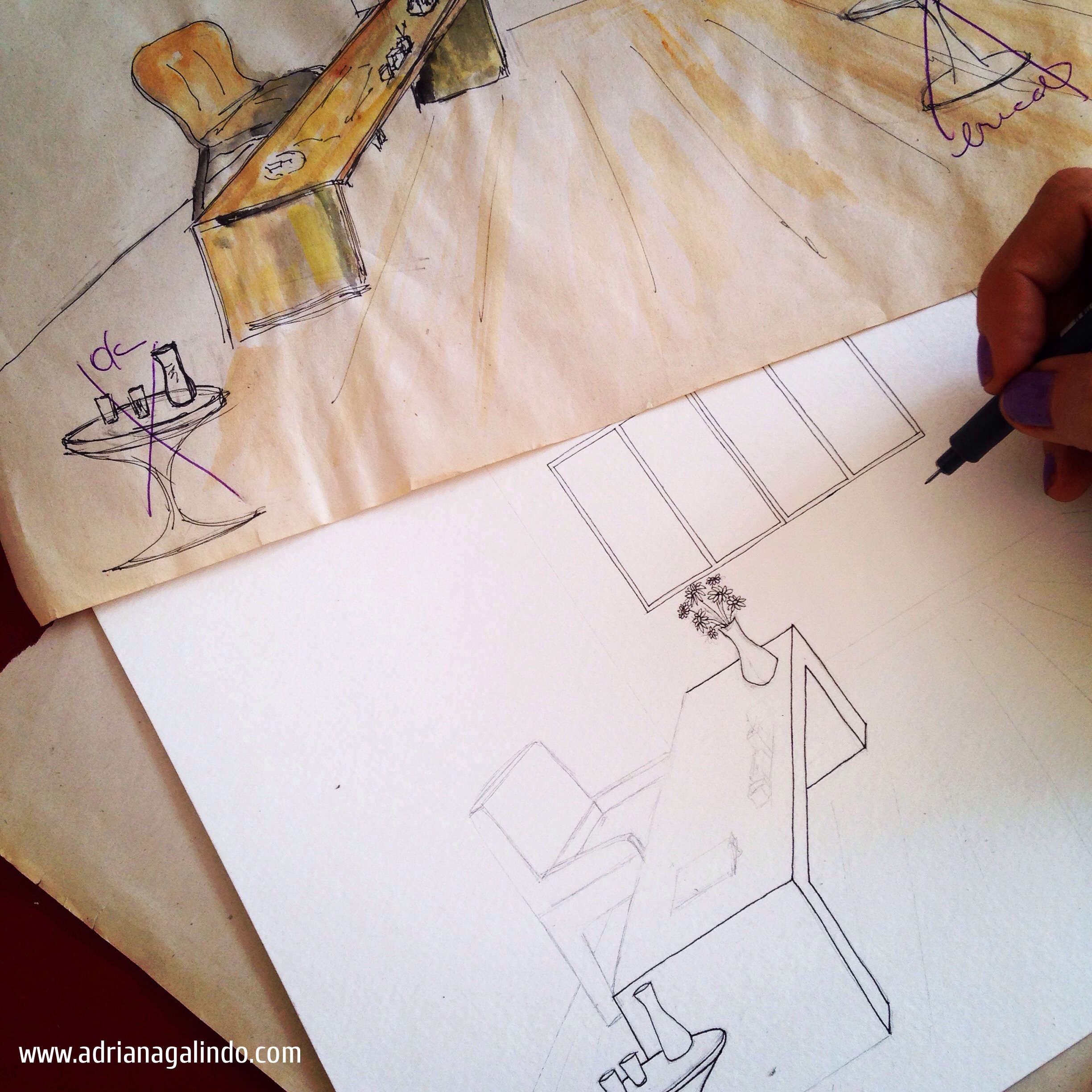 Imagem | 19 de outubro de 2015 | drigalindo Trabalhar numa encomenda e ver os olhinhos do seu cliente marejar ao ver o esboço satisfaz a minha alma ❤️ Commissioned work in progress #aquarela #adrianagalindo #watercolor