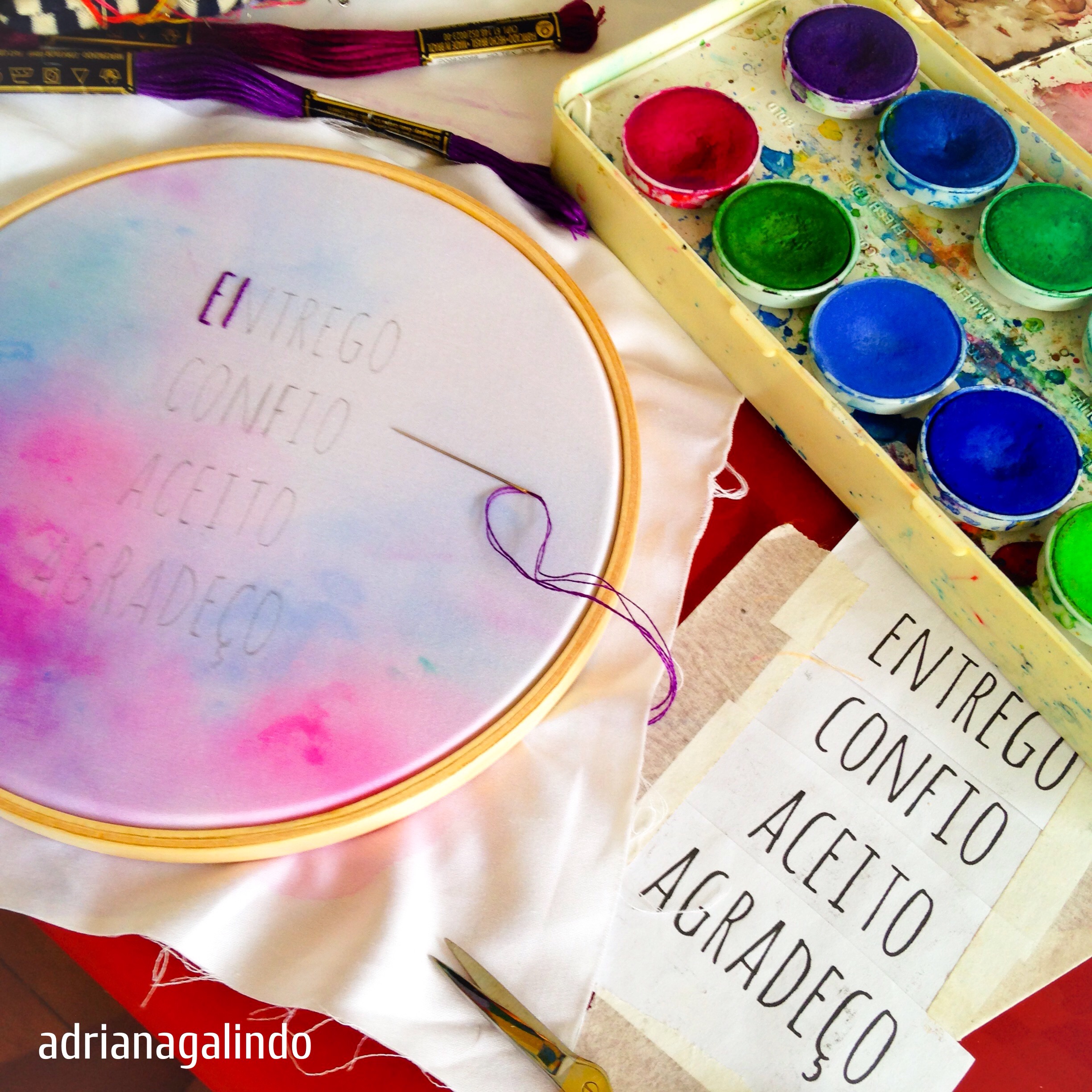 Imagem | 12 de janeiro de 2016 | drigalindo Trabalhando nesta abençoada encomenda ✂️🎨 bordado aquarelado Commissioned work in progress. Embroidery and watercolor 🎨❤️ info: drigalindo1@gmail.com