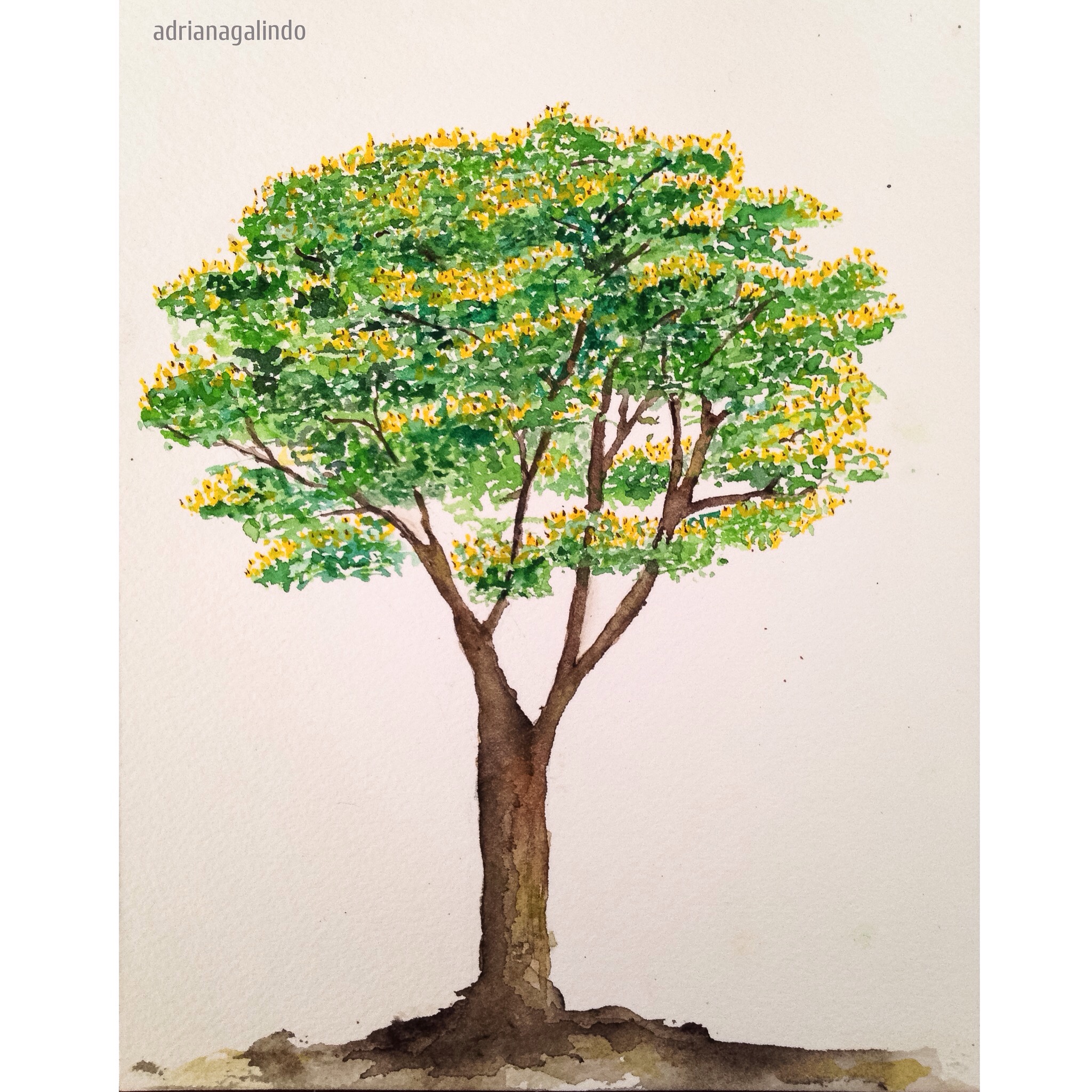 Imagem | 5 de fevereiro de 2016 | drigalindo Sibipiruna, árvore 19 (Caesalpinia pluviosa, nativa do Brasil) #40treesproject #adrianagalindo Aquarela sobre papel Arches, 21 x 15cm Sibipiruna, tree 19 (Caesalpinia pluviosa, brazilian tree) watercolor