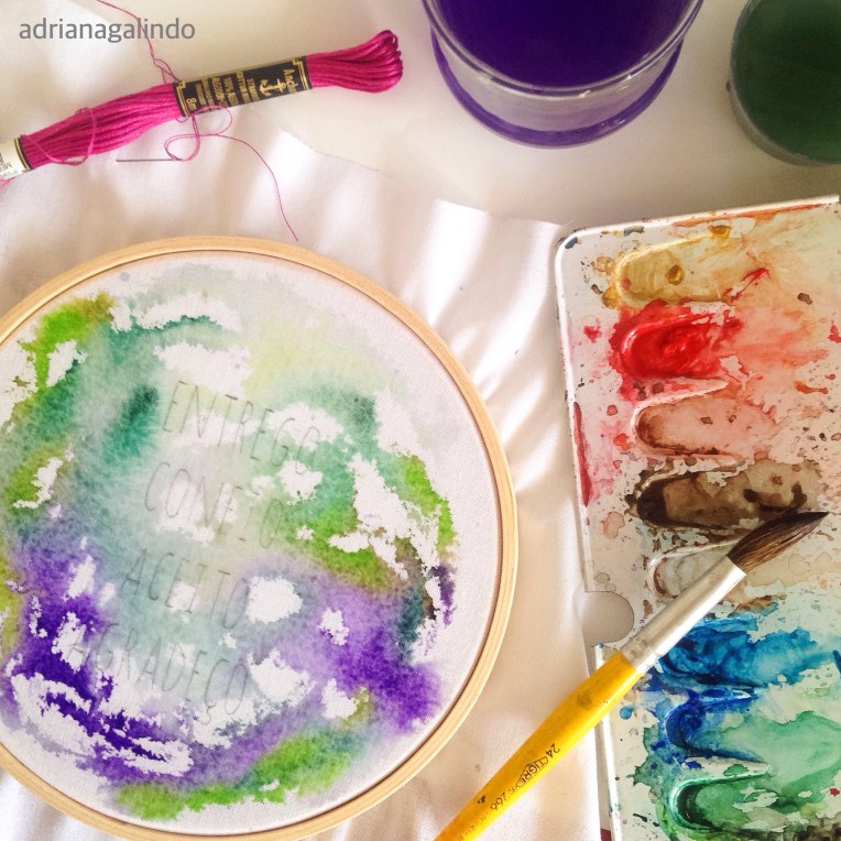 Imagem | 9 de março de 2016 | drigalindo Bordado aquarelado em andamento 🎨✂️ Embroidery and watercolor in progress #adrianagalindo