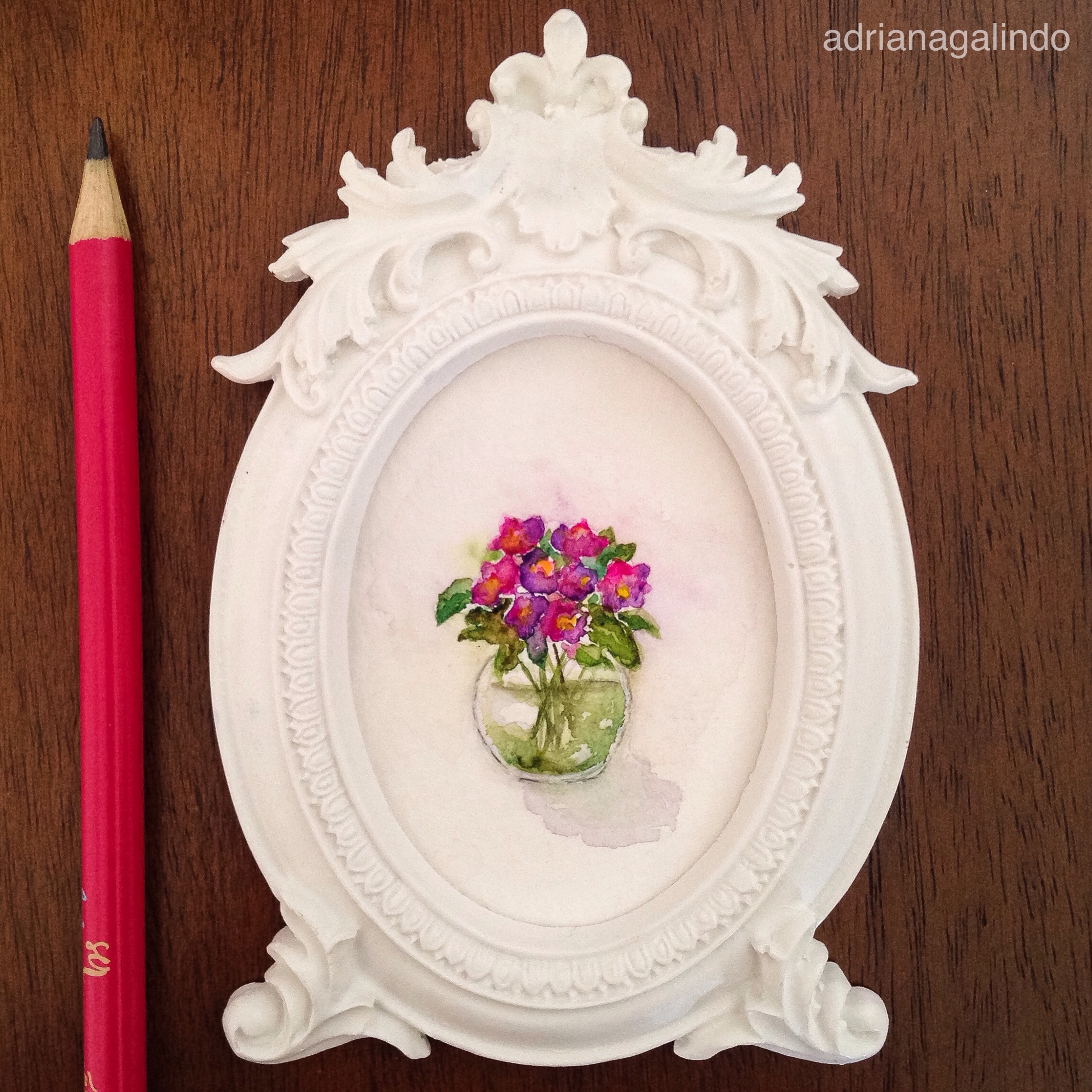 Imagem | 15 de março de 2016 | drigalindo Amor em miniatura, aquarela emoldurada 🎨❤️ venda: drigalindo1@gmail.com Little love, framed miniature watercolor ❤️