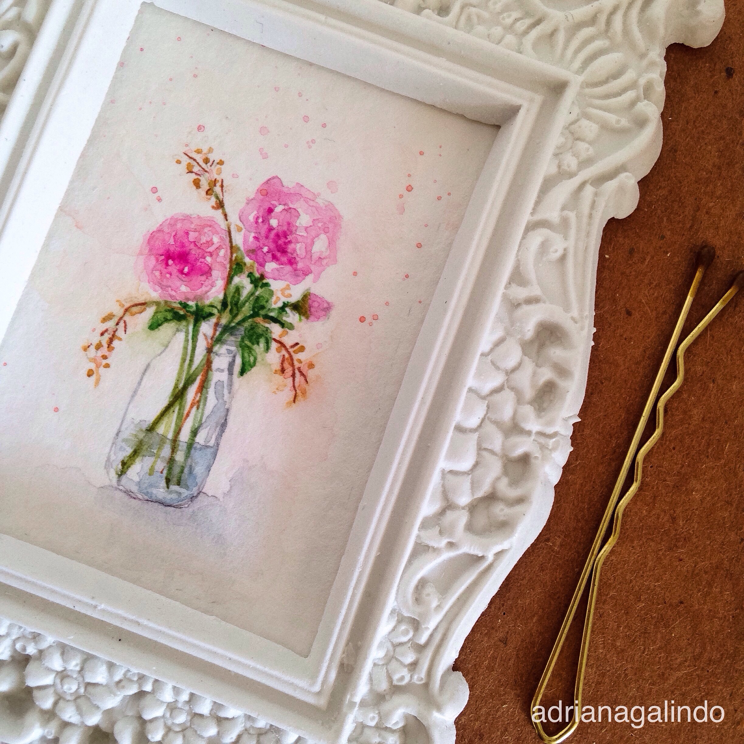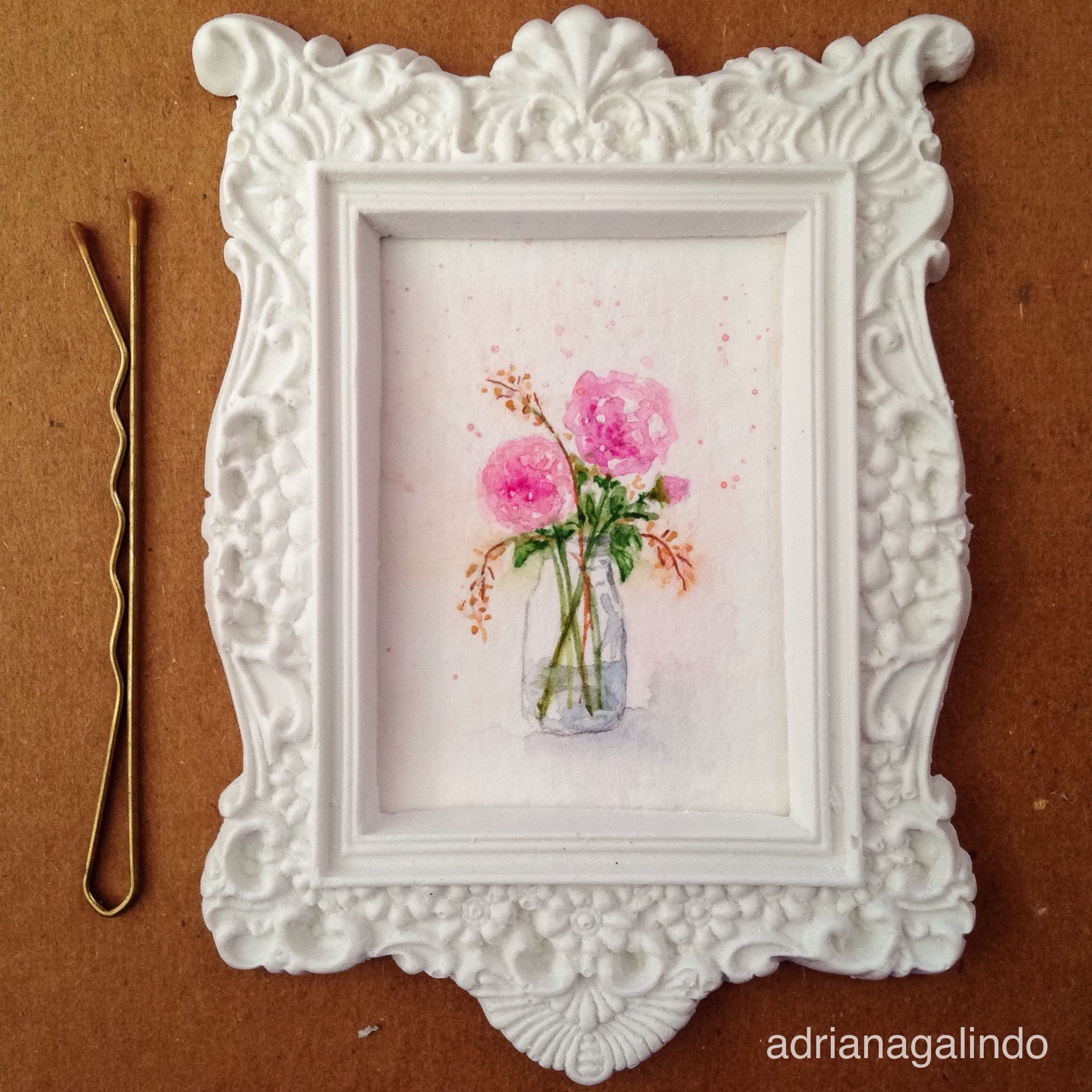 Imagem | 21 de março de 2016 | drigalindo Amor em miniatura, aquarela emoldurada (s/m 5,5 x 4 cm) venda/encomenda: drigalindo1@gmail.com #adrianagalindo Little love, framed watercolor miniature