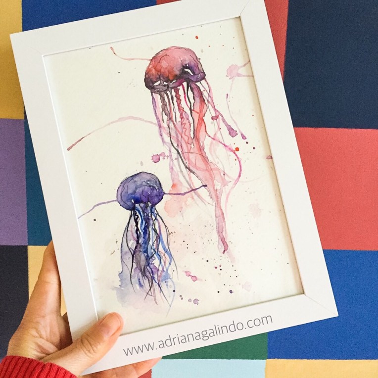 Imagem | 7 de outubro de 2016 | drigalindo Aquarela prontinha para fazer alguém feliz 😍 dê arte de presente 🎨❤️ Jelly Fish, watercolor, 15x21cm 🎨 Shop: drigalindo1@gmal.com #adrianagalindo