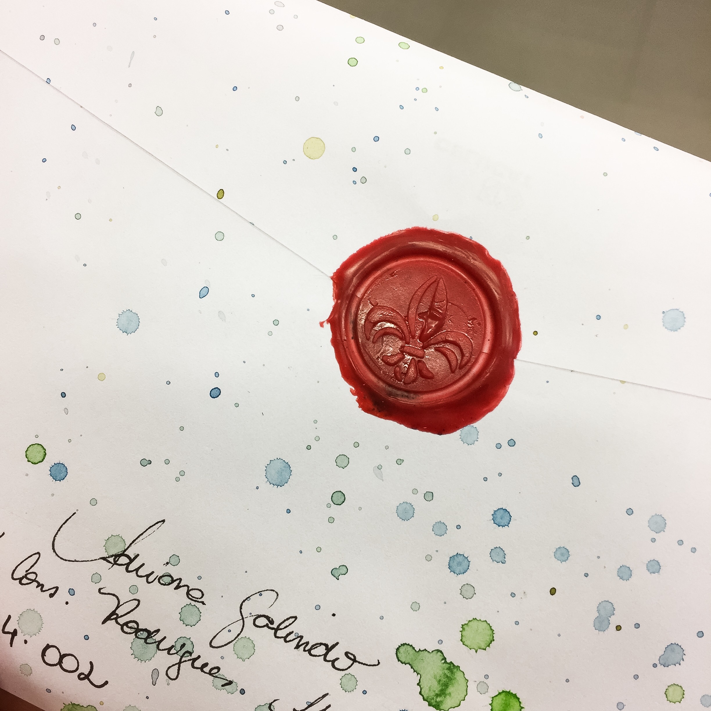 Tenho me deliciado no preparo do envio das aquarelas, porque sempre amei enviar cartas 😍 aqui os envelopes são aquarelados e lacrados a moda antiga, com sinete e cera 💌