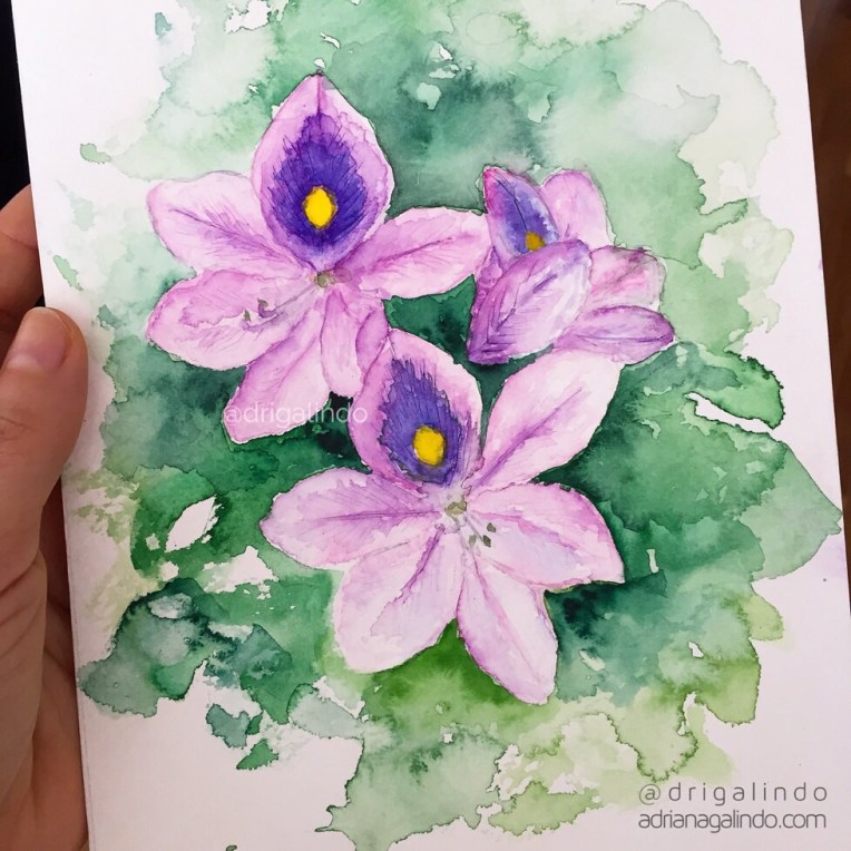 Imagem | 12 de março de 201712 de março de 2017 | drigalindo Aguapé do @flordasaguas.cunha Water Hyacinth 🌸 Eichhornia crassipes #aquarela #watercolor #adrianagalindo Shop: drigalindo1@gmail.com