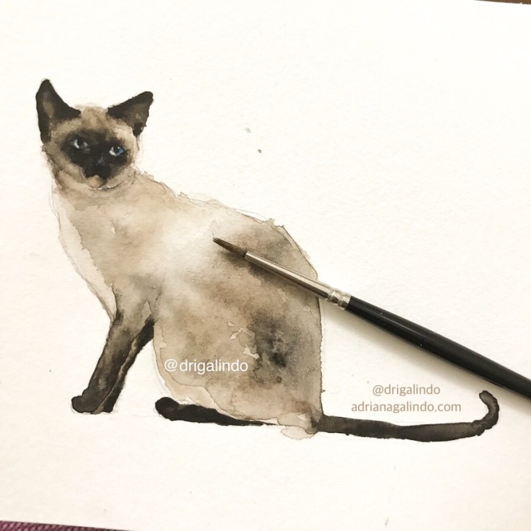 Um gatinho feito na correria para não furar o desafio #worldwatercolormonth n.5 🎨 #adrianagalindo #drigalindo #aquarela #watercolor #cat #gato #gatosiames