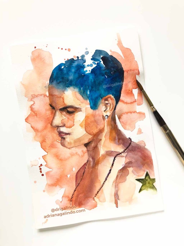 Fazia tempo que não pintava retratos em aquarela