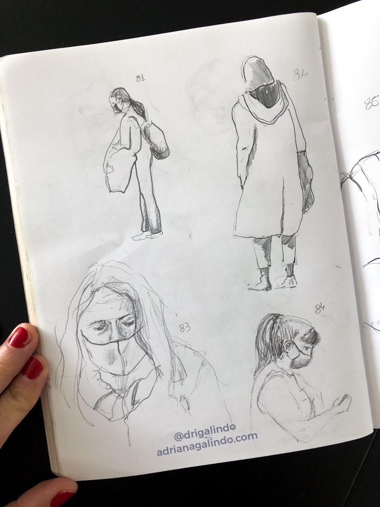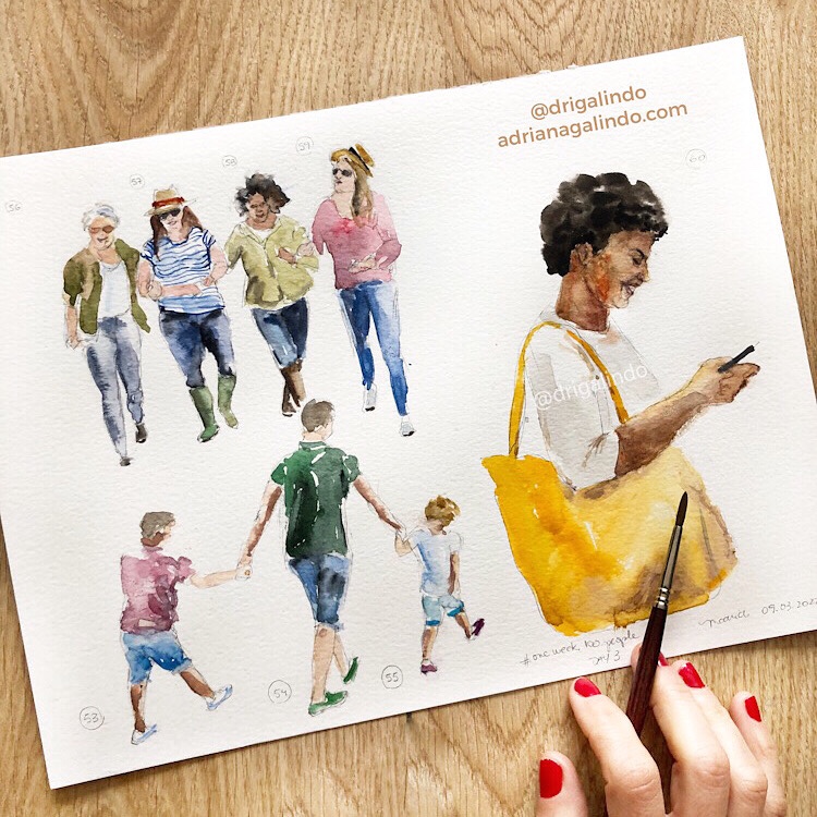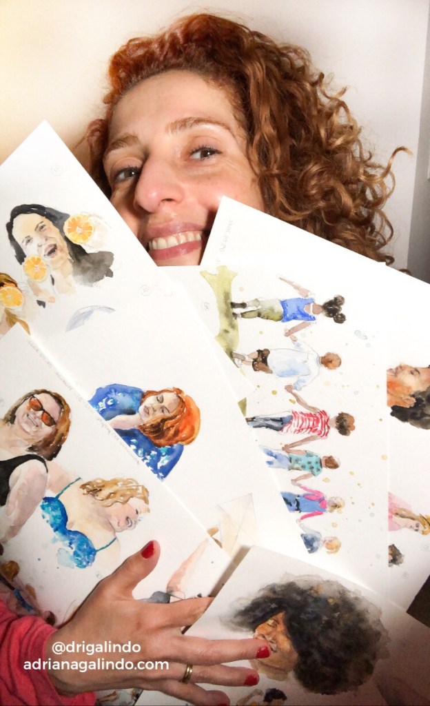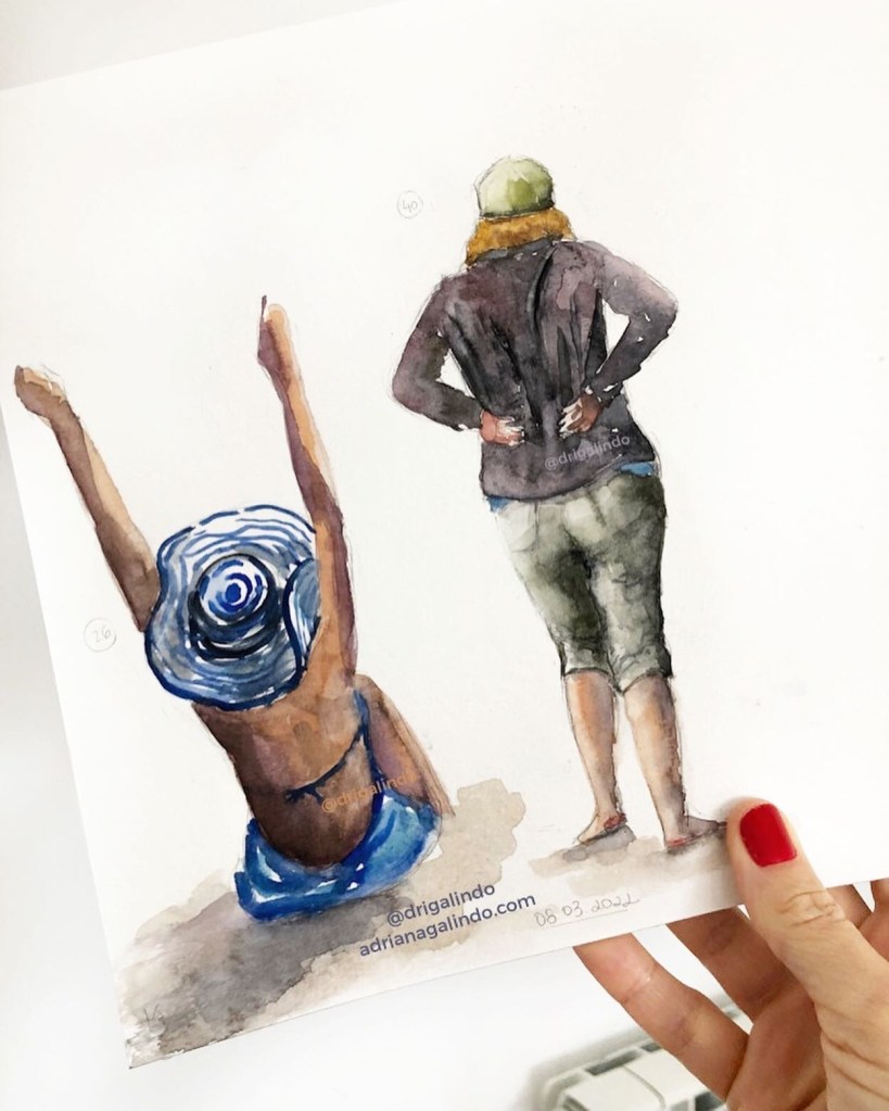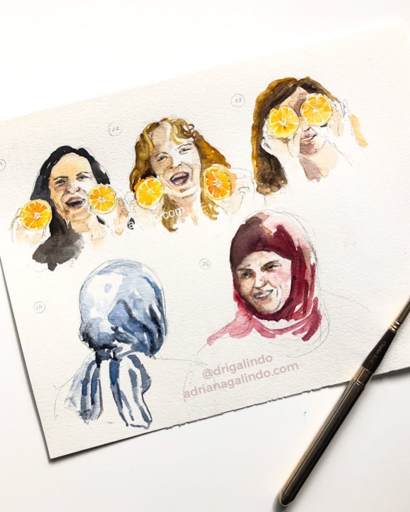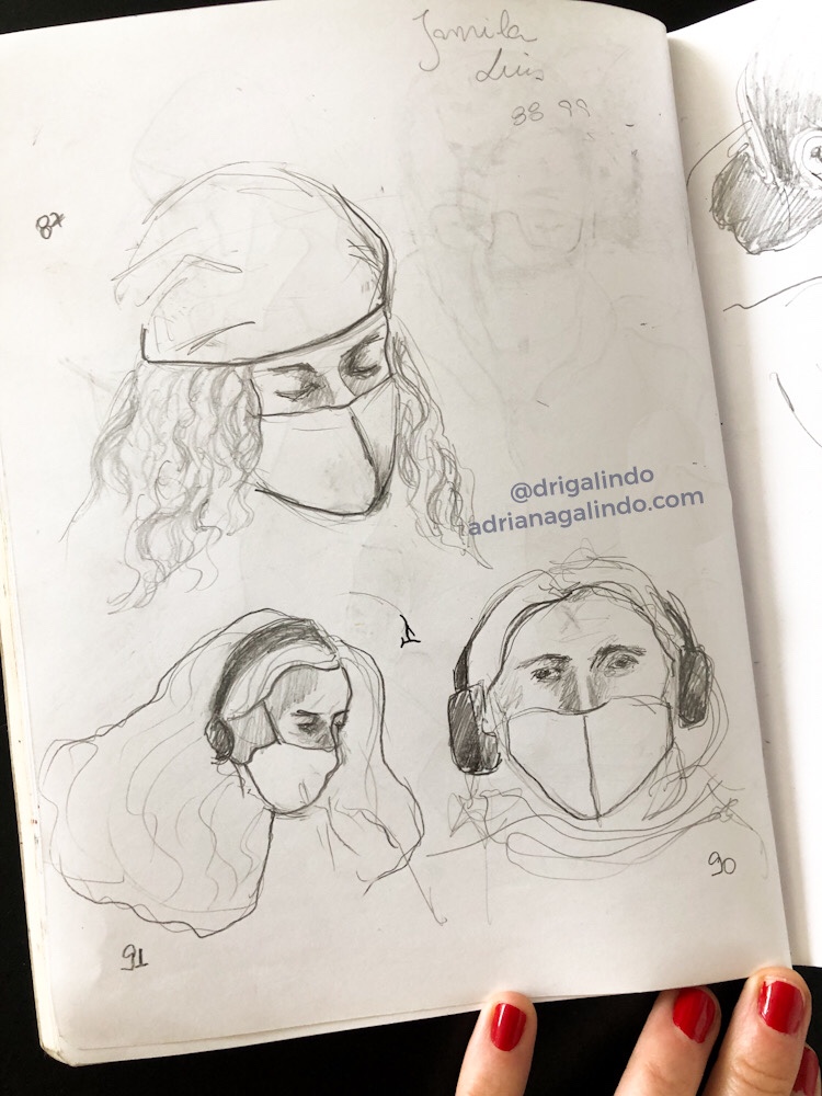 Então, nesses 5 dias intensos, produzi aquarelas a partir de fotografias e desenhos a grafite de pessoas ao vivo.