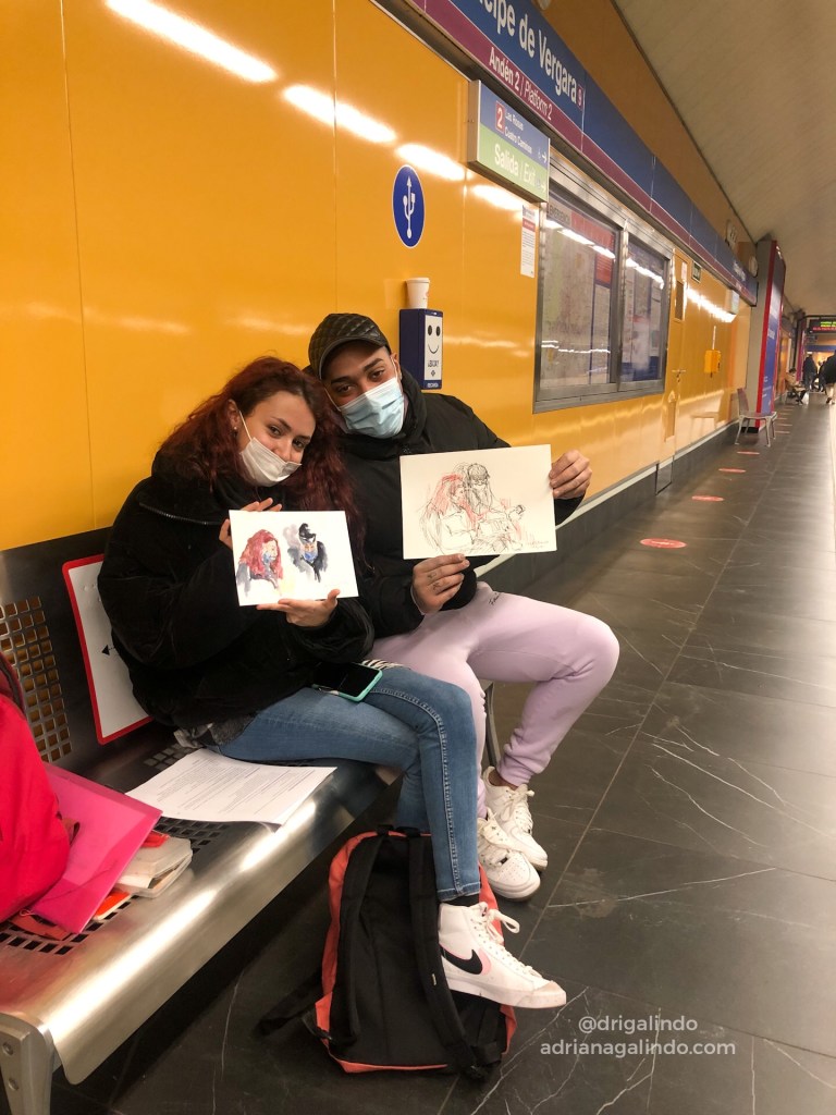 Angel e eu fomos para o metrô e depois para o Shopping desenhar pessoas ao vivo, fazendo sketches super rápidos. Teve até um casal que se ofereceu para posar. Gracias @mofletexx.