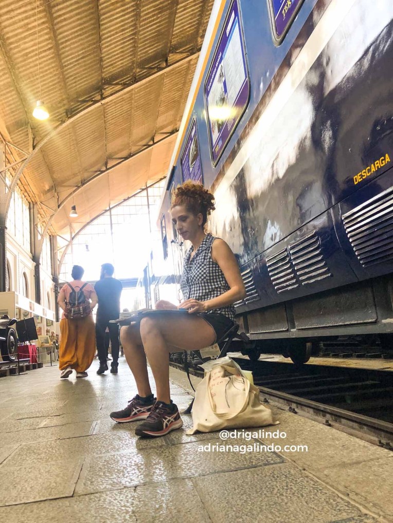 Acuarela de la modelo del desfile de moda sostenible de Susana Álvarez en #deliciasconarte en el #museodelferrocarril