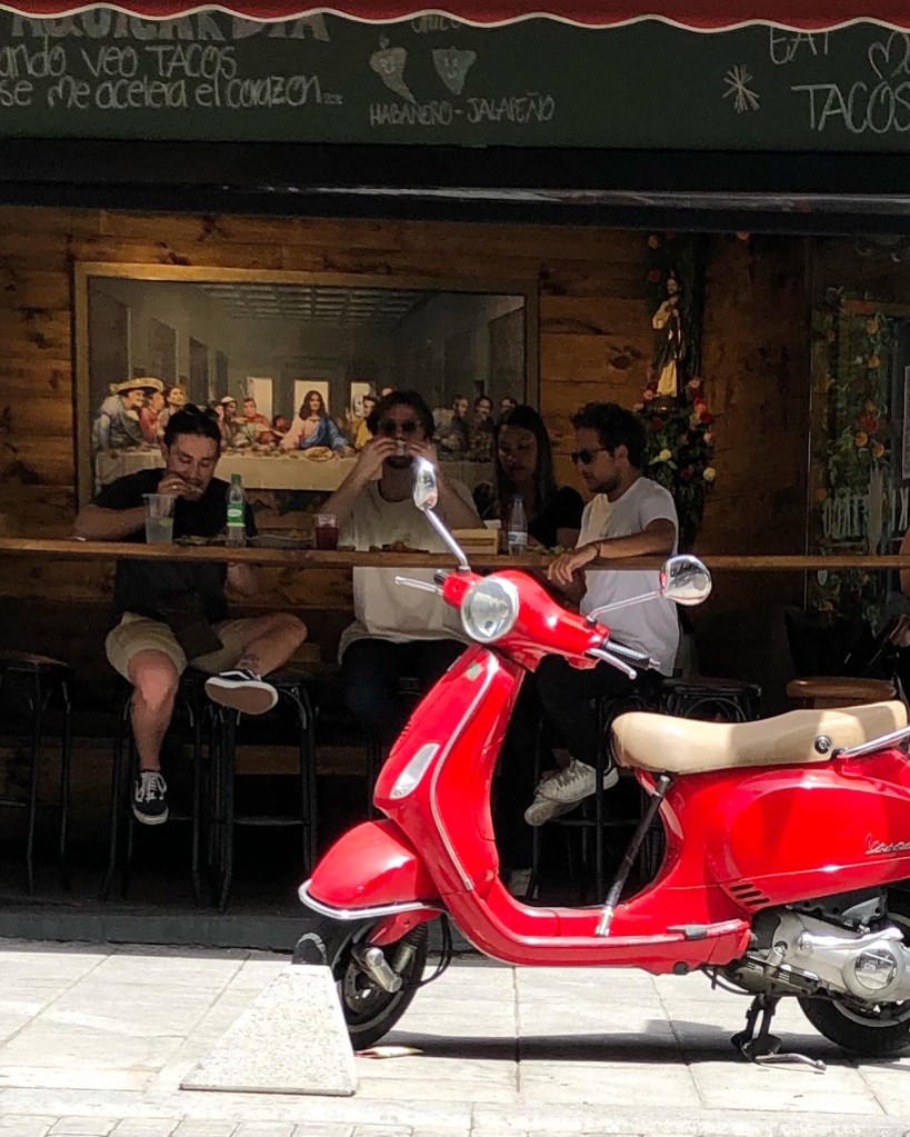Ángel y yo estábamos de camino hacia el metro en Lavapiés cuándo vimos esta encena: três chicos en la barra, tomando algo, mirando sus móbiles y chalando. Nos pusimos delante y no pudimos evitar que nuestros lápices y pinceles les retrataran 🎨.