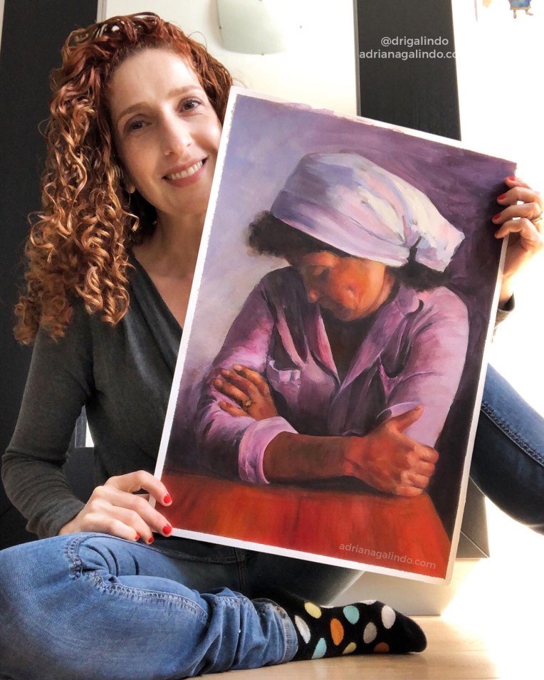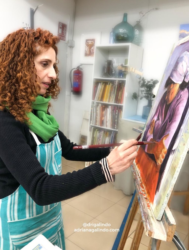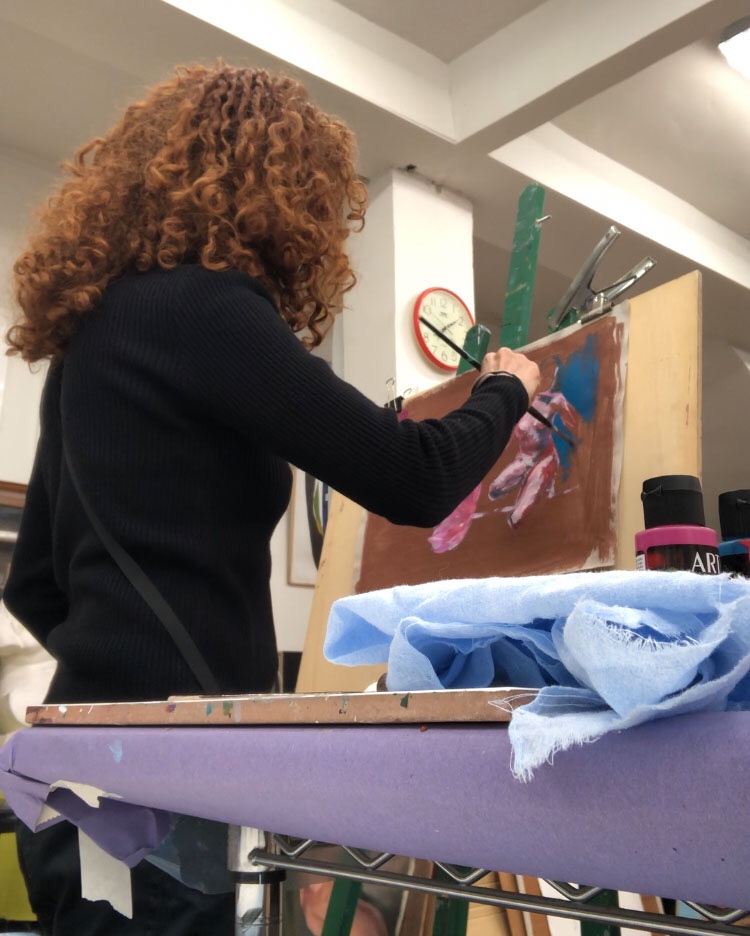 Fui conhecer o Atelier de Miguel Enjunto e ele me convidou a pintar. Eu tinha levado meu material de aquarela, mas estando ali, no meio dos cavaletes, me veio a lembrança de quando eu pintava em telas, tinta óleo m, giz pastel e por aí vai.
