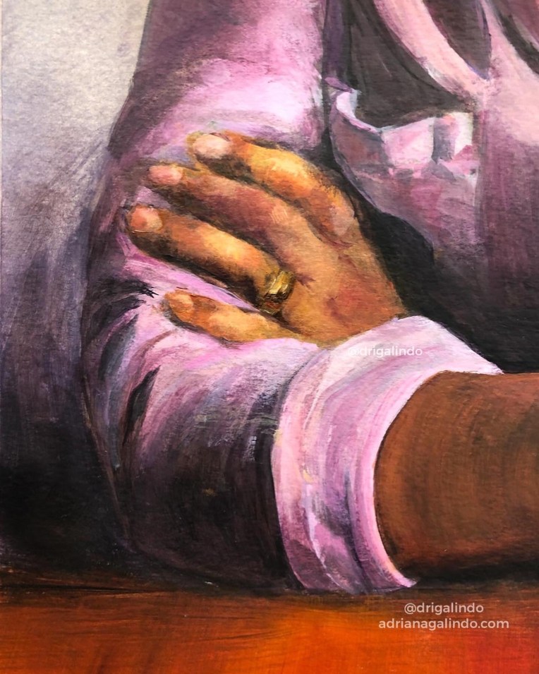 Fazia muuuuuito tempo que não pintava assim e tudo é diferente: a tinta, os pincéis compridos e cerdas mais duras, o papel, a posição do corpo (em pé), o gesto da pincelada, enfim, tudo muda!