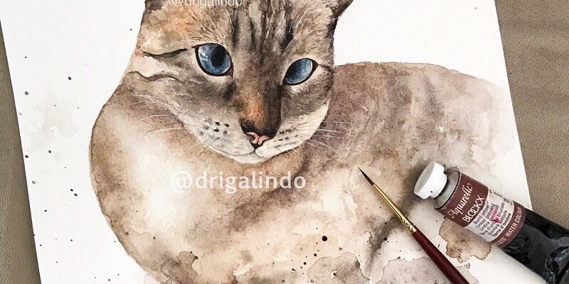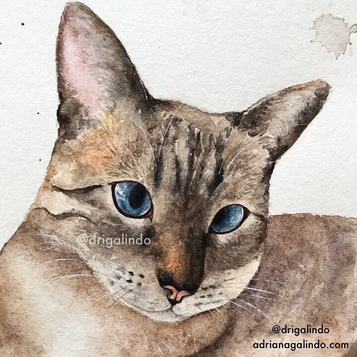 Um gatinho feito na correria para não furar o desafio #worldwatercolormonth n.5 🎨 #adrianagalindo #drigalindo #aquarela #watercolor #cat #gato #gatosiames