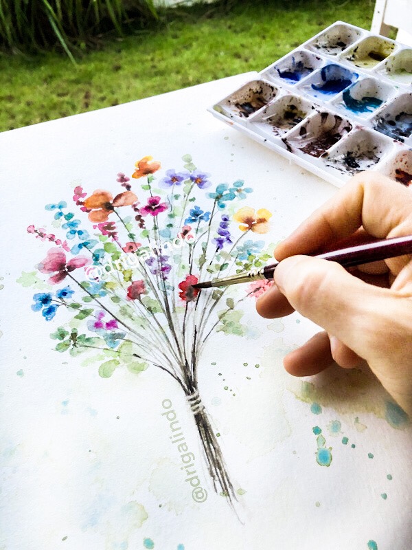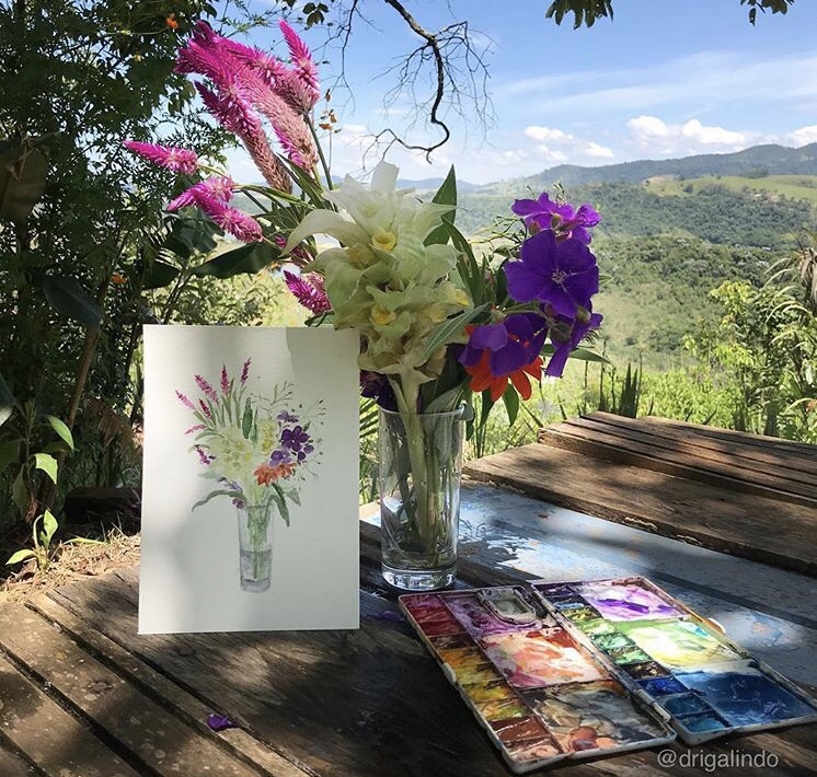 Desde que conversamos para compreender e sentir o que a cliente desejava, o tema ficou perambulando minhas ideias muitos dias antes de ir para o papel. Em vários momentos do dia eu me pegava pensando no trabalho e tive vários sonhos com ele. Fiz vários esboços até ir para a pintura (pintei mais um).
