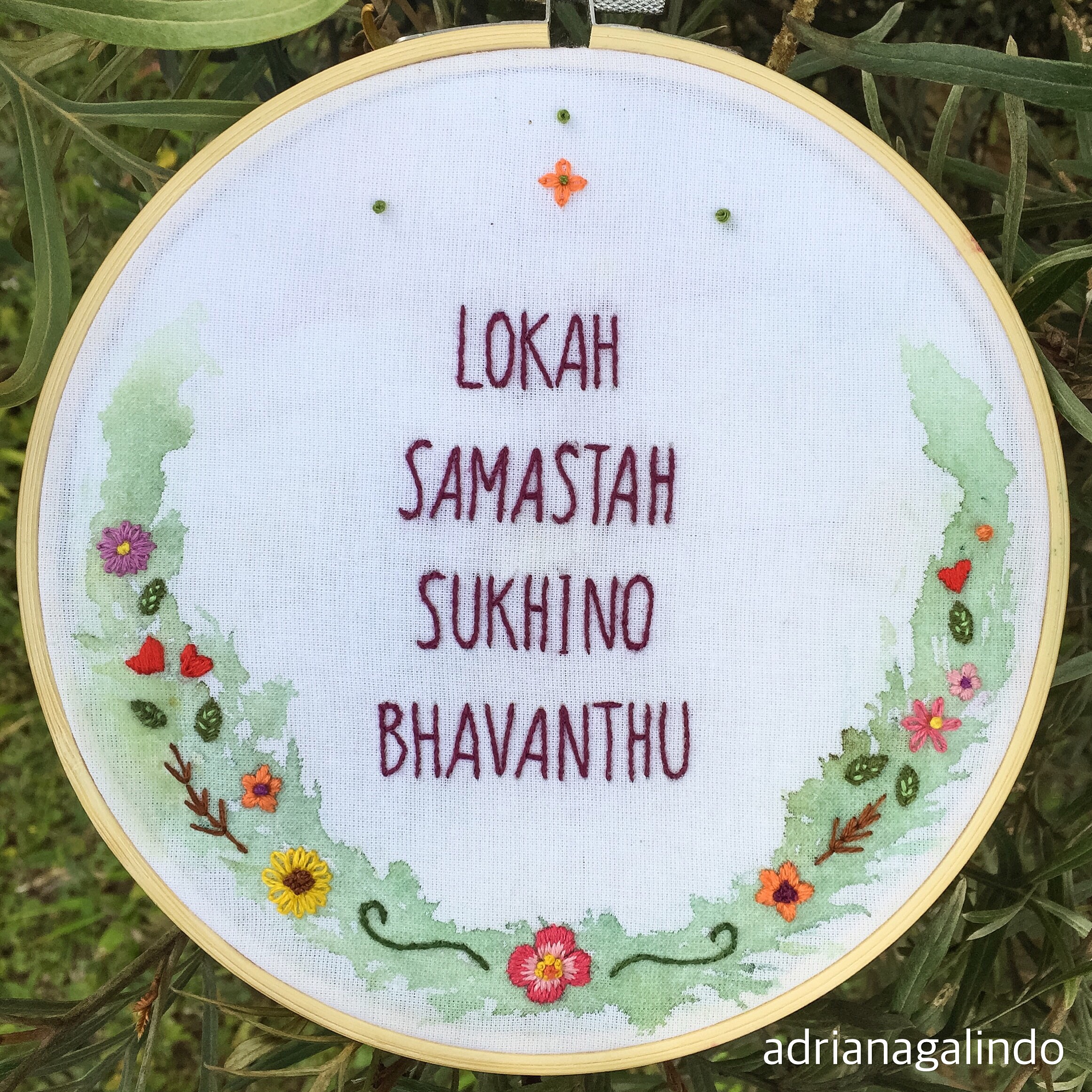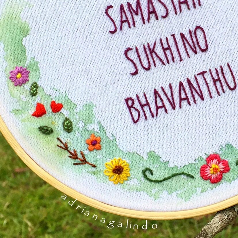 Imagem | 1 de junho de 2016 | drigalindo Mantra translation: “May all beings everywhere be happy and free” ❤️🙏tradução: “que todos os seres de todos os planos sejam felizes e livres ” 🙏❤️embroidery and watercolor 🎨 bordado aquarelado ✂️🎨 #adrianagalindo