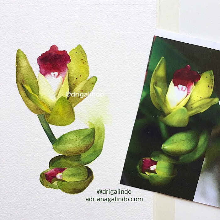 Orquidea em aquarela, numa pegada mais botânica
