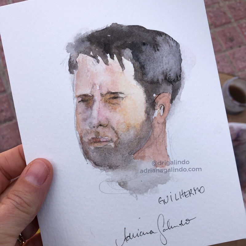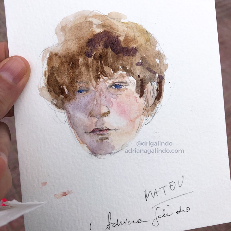 Então, nesses 5 dias intensos, produzi aquarelas a partir de fotografias e desenhos a grafite de pessoas ao vivo.